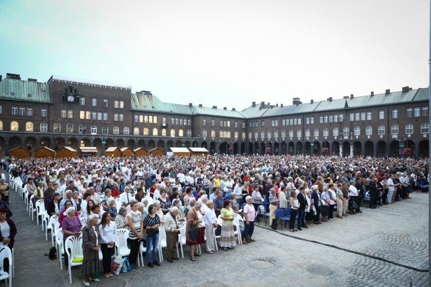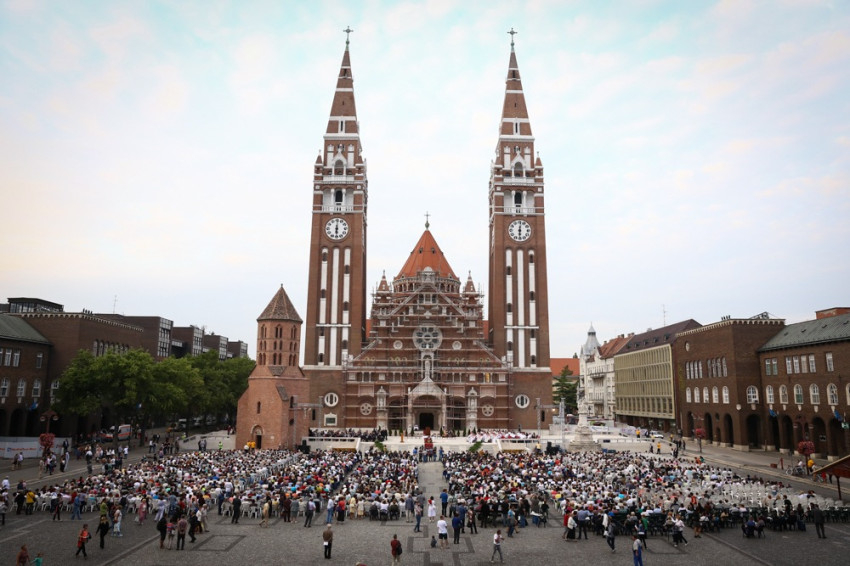 Az ünnepi alkalomra a Szent Gellért-zarándoklat keretében buszokkal érkeztek az egyházközségek hívei, akik zsúfolásig megtöltötték a dóm előtti teret.