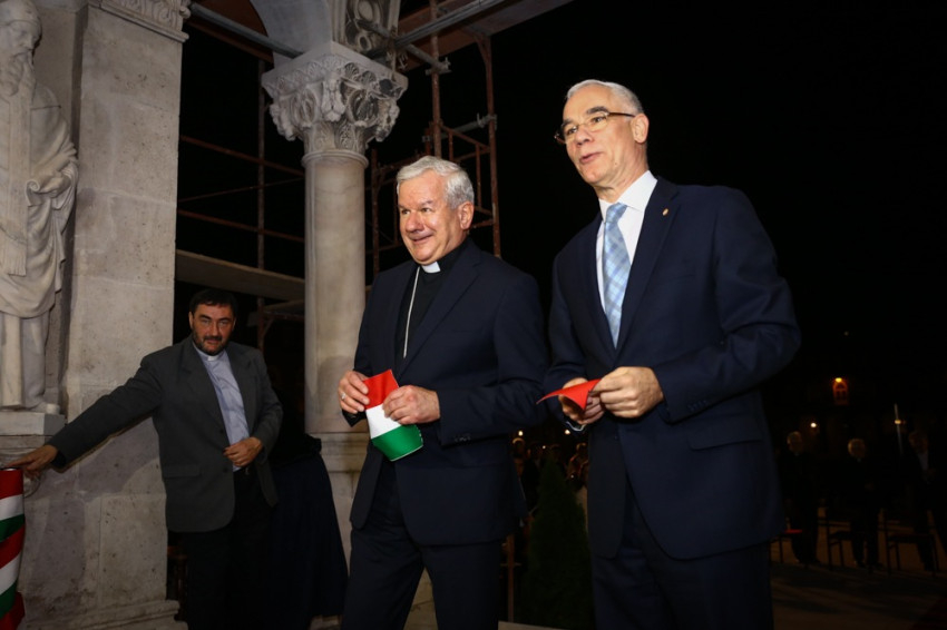 Az ünnepi beszédeket követően Kiss-Rigó László és Balog Zoltán átvágták a felújítást jelképező nemzeti színű szalagot az ünneplő közösség előtt.