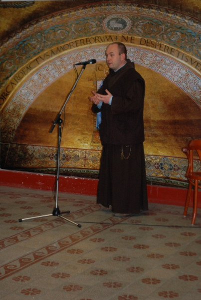 Kálmán Peregrin OFM Rupnik atyával való beszélgetését idézte fel a megnyitón. Marko Ivan Rupnik szlovén jezsuita alkotása díszíti a Mátraverebély-Szentkúti Nemzeti Kegyhely szabadtéri oltárát. A boldoggá avatás előtt álló ferences vértanúk ábrázolásával kapcsolatban Peregrin testvér először azt kérte: fotószerűen ábrázolja őket a mozaik, hogy akik még személyesen ismerték őket, azok rájuk ismerhessenek. Rupnik atya viszont végül amellett döntött, hogy csak egy-két jellemző vonást örökít meg, hiszen az örök életben újjáteremtett, kisimult arcot kapunk Istentől.