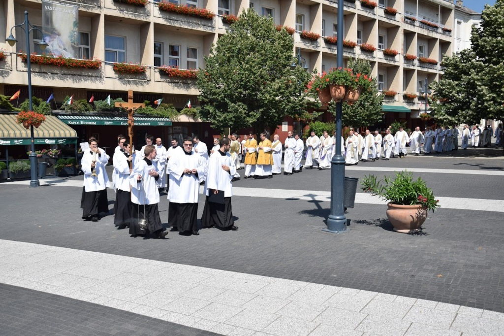 A rekollekciót követően a püspökség épületéből a székesegyházba vonult az asszisztencia – a Kaposvári Egyházmegye kispapjai és az esztergomi szeminárium papnövendékei –, valamint a koncelebráló papok, köztük az iraki lelkipásztorok is.