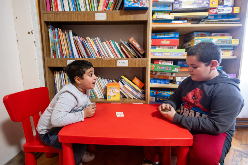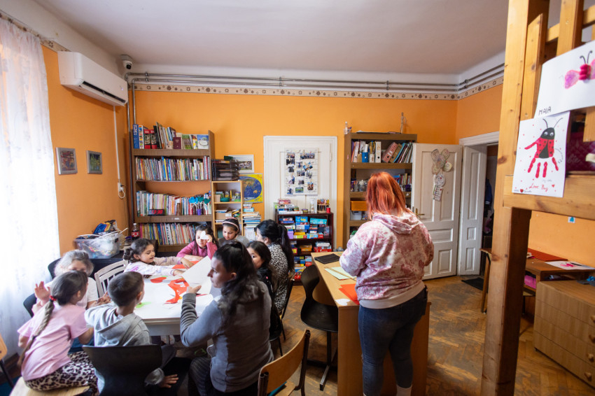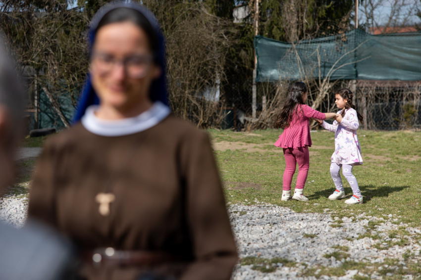 Az alapítvány központja az Arló közepén épült „Befogadlak” Közösségi Ház. Az udvarban nyolc-tíz éves gyerekek játszanak, labdáznak, miközben mi Janka nővérrel beszélgetünk.