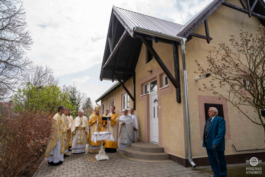 A Szent Liturgia után a papság a hívekkel együtt vonult a közösségi házhoz, melyet Szocska Ábel nyíregyházi megyéspüspök szentelt olajjal megkent, a házigazda, Kerékgyártó András atya megtömjénezett és Kiss Zsolt esperes-parókus szenteltvízzel meghintett.
