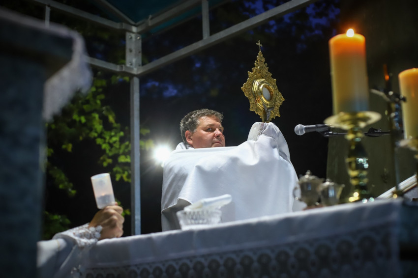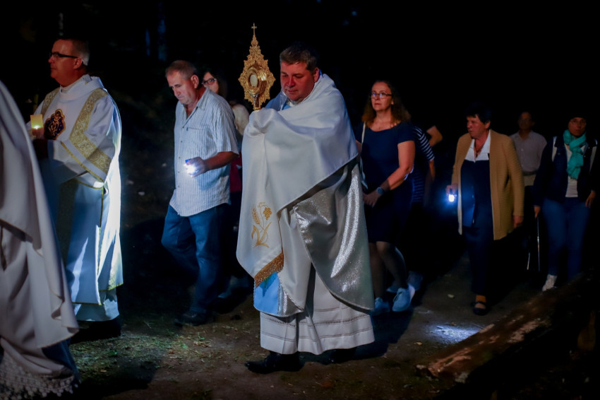 A szentmise fáklyás körmenettel, majd szentségi áldással folytatódott, amit ifjúsági szentségimádás és közösségi rózsafüzér követett.