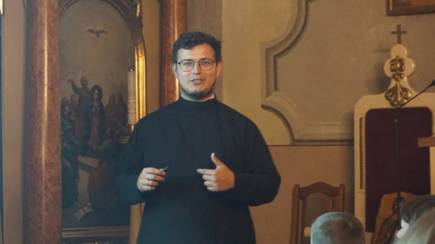 A liturgia után Molnár Ádám atya tartott előadást. Ő gyermekkorában sok-sok esztendőn át a sajópálfalai templom oltáránál ministránskodott. Mostani előadásának ihletője a tavaly Rómában megrendezett nemzetközi ministránszarándoklat volt. Képzeletben most is útra keltek; Róma négy bazilikáját, a Szent Péter-bazilikát, a Lateráni Szent János-bazilikát, a Falakon kívüli Szent Pál-bazilikát és a Santa Maria Maggiore-bazilikát látogatták meg fényképek segítségével. Az előadás pedig arra is kitért, mit tanulhatunk a négy szenttől: az Istenszülő, Szent Péter, Szent Pál és Szent János miben állhat egy ministráns előtt példaként.