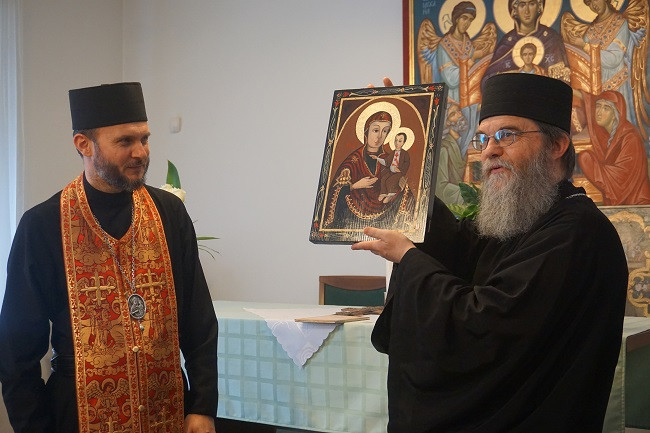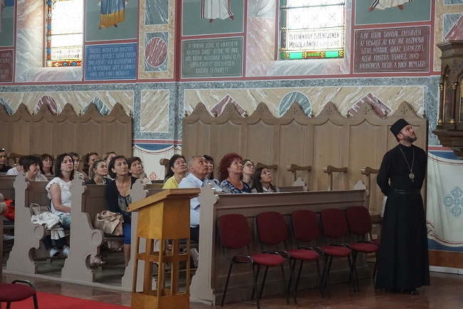 A következő állomás az ortodox templom volt, ahol Tatárka Kirill és Krank József atyák fogadták a vendégeket. Ez a kétszáz éves templom nemcsak Miskolcon, hanem az egész országban rendkívüli értéket képviselő műemlék, igen ritka copf stílusban épült. Ikonosztáza önálló mestermű: 16 méter magas, és mintegy 88 kép található rajta, köztük Jézus életének ritkán ábrázolt jelenetei. A templomban látható a Szentséges Istenszülő Ahtirkai Csodatevő ikonja is, melyet a hagyomány szerint II. Katalin orosz cárnő adományozott a közösségnek, amikor átutazóban Miskolcon járt.