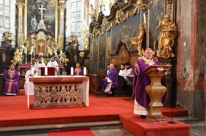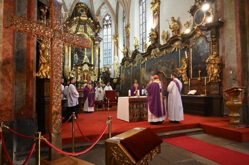 A missziós kereszt látogatását és a Nemzetközi Eucharisztikus Kongresszuson való cseh részvételt nagyon erősen támogatja Dominik Duka prágai püspök, Csehország bíboros-prímása. Örömmel fogadta el a plébános meghívását, és március 8-án, vasárnap ő tartotta az ünnepi szentmisét, melyet megelőzött egy rövid, cseh nyelvű előadás a missziós keresztről. Ezen a napon nem volt külön cseh, magyar és szlovák mise, ahogy általában lenni szokott, hanem egy, közös szentmise volt 11 órai kezdettel. A szentmisén koncelebrált a KPI rektora és a plébános, együtt ünnepelt Boros Miklós nagykövet. Az állandó részek latinul, az olvasmány szlovákul, a szentlecke magyarul, az evangélium és a szentbeszéd csehül hangzott el. Mindhárom közösség szinte teljes létszámban megjelent.