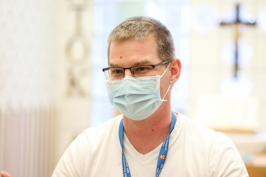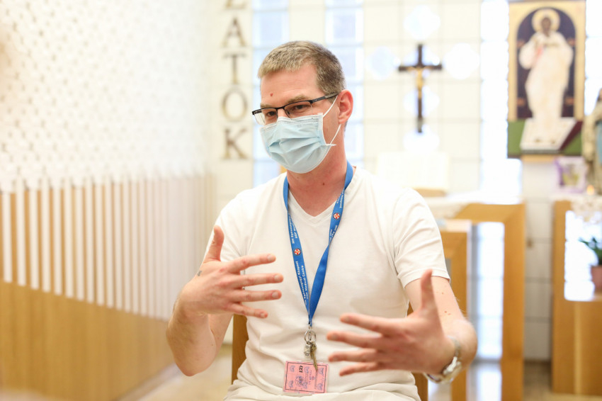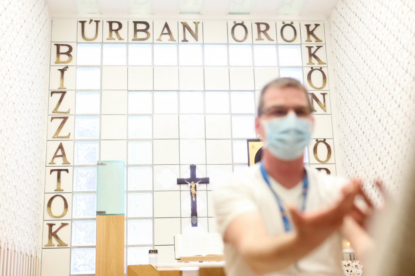 – A traumatológiára osztottak be. Mivel szakmai ismereteim a végzettségem megszerzése óta eltelt húsz évben megkoptak, azt a feladatot végzem, amire kérnek. Kötözés, ágyhúzás, betegkísérés. Közben hívnak a Covid-osztályra is, viszem a szentségeket. Figyelem a szakképzett dolgozók munkáját, könyveket tanulmányozok; igyekszem frissíteni, felújítani korábbi tudásomat. Jó látni a húsz év alatt bekövetkezett fejlődést. Ennél nagyobb szükség van azonban a lelkipásztorra, arra, hogy szentmisét mutassunk be, lelkibeszélgetésre menjünk. Nem egyedül végzem: a kórházban jól működő lelkigondozói szolgálat van. Ők befogadtak, jó a kapcsolatom a lelkipásztorral, a lelkipásztori munkatárssal, de az orvosokkal, ápolókkal is. Hálás vagyok a velem szemben tanúsított türelemért.