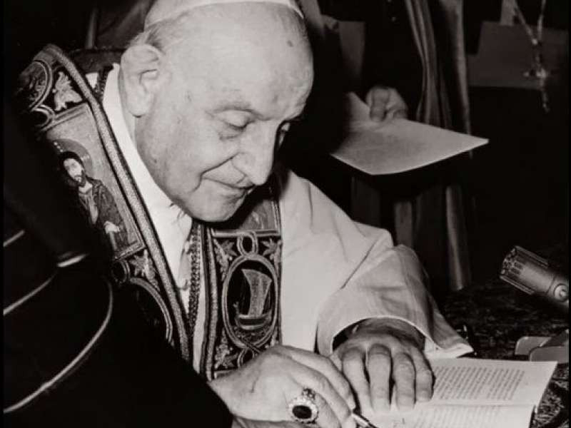 XXIII. János aláírja a Pacem in terris enciklikát
