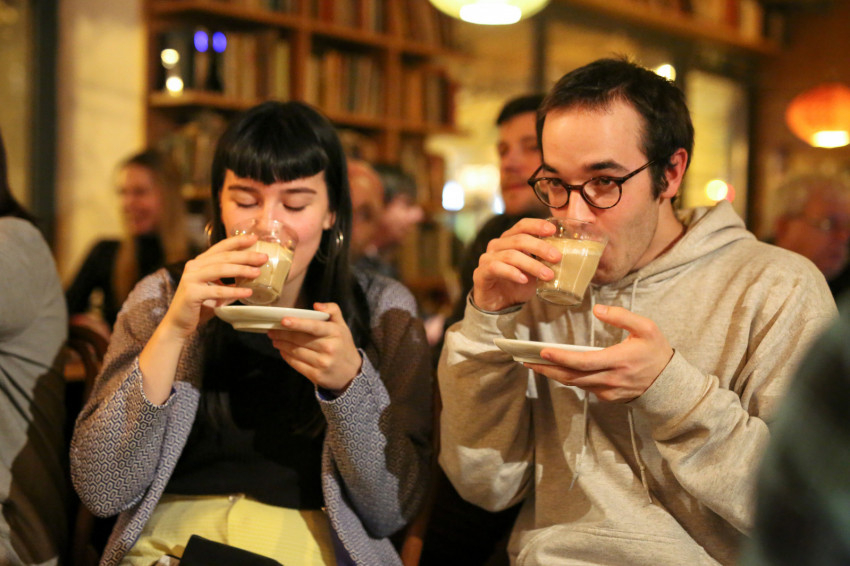 Az előadás végén a már előre előkészített lombikszerű kávéfőzőben kis tűz fölött lefolyt fortyogva a forró kávé, és aki közel ült, kaphatott is belőle egy keveset. A hosszúra nyúlt, majdnem kétórás est során az érdeklődés az utolsó pillanatig nem lankadt, ami manapság nem kis dolog, hiszen még vetített képeket sem láthattunk közben. Az előadó zenetörténész azt ígérte, lesz folytatás.