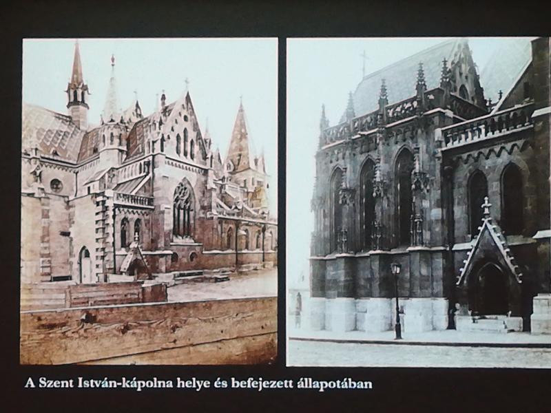 Láthattunk rengeteg fotót, amelyek már a kutatások kezdetétől készültek és persze megmaradtak Schulek felmérései, tervvázlatai is. A kutató teljes részletességgel mesélte el és vetítette ki a vászonra a felmérés, kutatás, tervezés különböző fázisait. Hiszen komoly régészeti kutatás is kezdődött. Mai ésszel egészen abszurd, hogy mennyire körbe volt építve a templom. A négyemeletes épületeket falusias, földszintes házak követték.