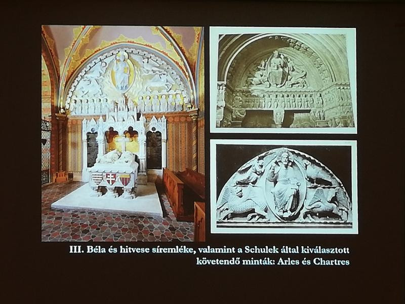 Az előadás során szó volt még III. Béla és felesége sírjának feltárásáról és áthelyezéséről a templom egyik oldalkápolnájába. Miután ez a koronázó templom, így helyet kapott benne a Mária-kultusz is, hiszen erre nagy igény volt, és ez meg is jelenik a falképeken.