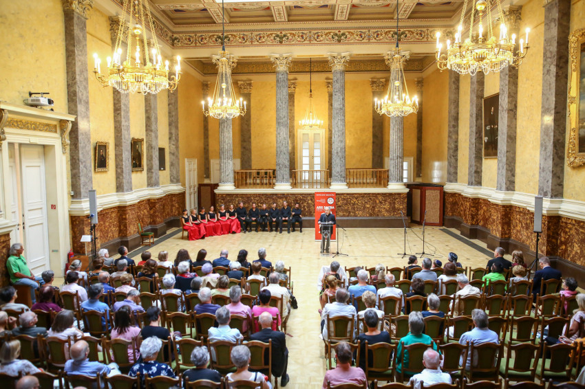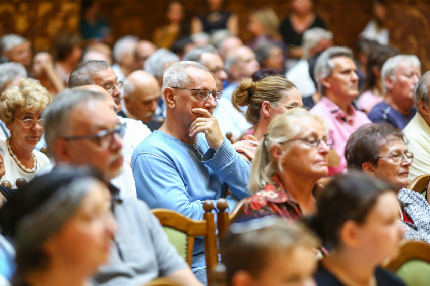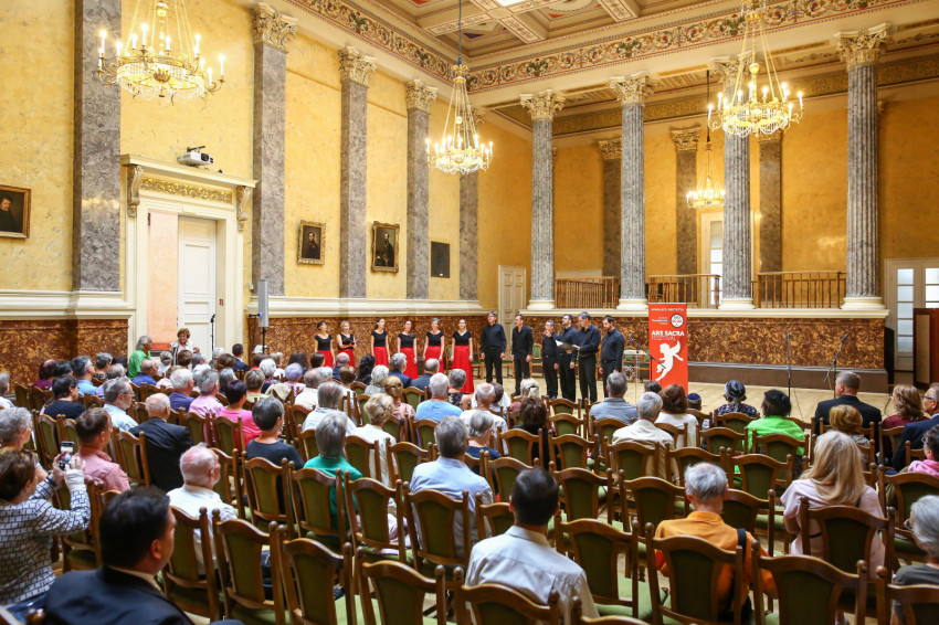 A szakrális művészetek hete, a XIII. Ars Sacra Fesztivál hivatalos megnyitójára a Magyar Nemzeti Múzeum dísztermében került sor péntek délután. Már a kezdés előtt jó félórával gyülekezett az érdeklődő közönség a gróf Széchényi Ferenc, Kossuth Lajos és Erzsébet királyné életnagyságú olajfestményeivel díszített szépséges teremben.