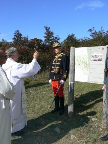 Magyar katonadalok eléneklése után Stojan Cotič, az egykori tábor közelében fekvő Miren-Kostanjevica község alpolgármestere szólt az emlékezőkhöz; beszédében kitért a Komeni-fennsíkon száz éve vívott harcok súlyosságára, valamint a Béke Ösvényének 2003 óta tartó felújítására. Stojan Cotič a folyamatban lévő munkákról is szólt; jelentkeztek az Interreg Szlovénia–Olaszország pályázatra Szent Márton útjainak megjelölésével, amely úthálózat kezdőpontja Szombathely. Feladatuk Szent Márton útját Logatectől a Vipavai-völgyön át egészen az olasz határig útjelzésekkel ellátni.