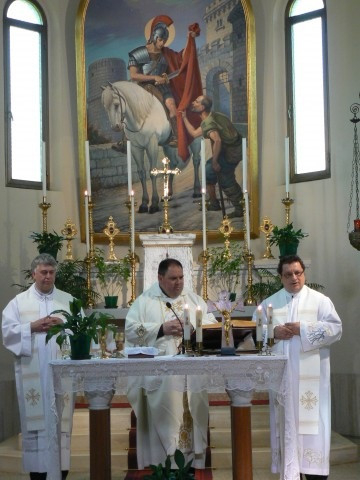 A kétnyelvű szentmisén, melynek főcelebránsa Dinko Bizjak helyi plébános volt, sok környékbeli és magyar hívő vett részt. Aigner Géza az egykori hadszíntéren Szent Mártonról mint követendő példáról beszélt, hozzá hasonlóan ugyanis „mi is a jó harcot akarjuk megharcolni, küzdve Isten országának építéséért”.