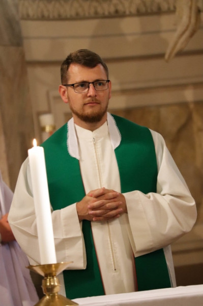 A püspöki mise keretében elbúcsúztatta Bezák Tamás korábbi egyházmegyei ifjúsági lelkészt, majd köszöntötte az ő feladatait szeptembertől átvevő Kovács Zsolt atyát.