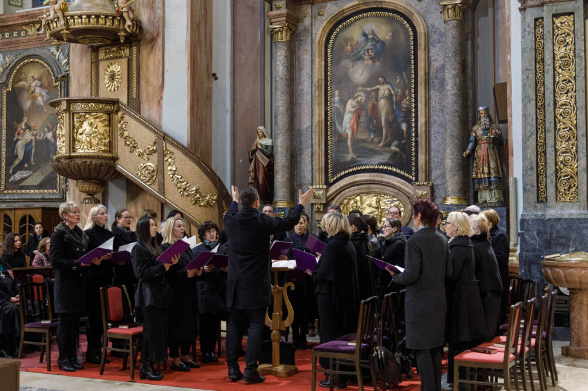 Az Úr szenvedésének ünneplése a püspök, a papság és a ministránsok csendes bevonulásával kezdődött. Az oltár előtt a püspök leborult, ezzel az önmagát kiüresítő, az emberrel, a földdel azonosuló Krisztust jelenítette meg. Az olvasmány és a szentlecke felolvasását követően az Albe Vidaković székesegyházi kórus passiót énekelt.