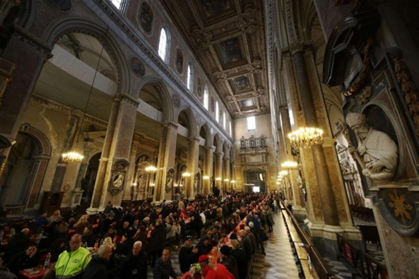 A kiszolgálásban az érsek-metropolitát az egyházmegyei karitász önkéntesei segítették. A szervezők 700 előétellel, 6000 szelet pizzával és 650 panettonéval, hagyományos karácsonyi kaláccsal várták a vendégeket, több mint hatszáz fedél és jövedelem nélkül élő embert.