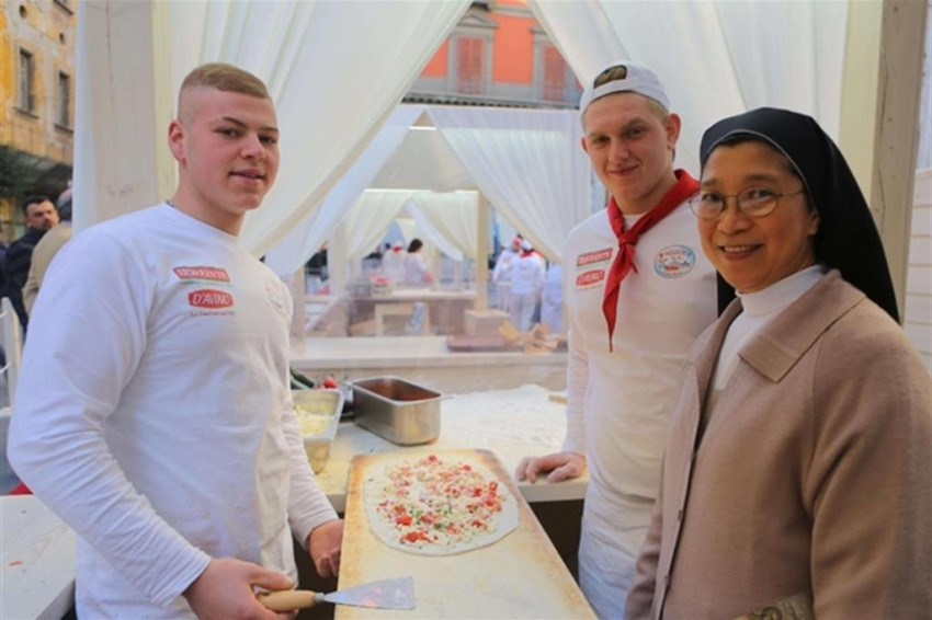 A székesegyház előtti téren a Vincenzo Staiano étteremtulajdonos jóvoltából elhelyezett kemencékben készítették a pizzákat. (Vincenzo Staiano volt az a pizzakészítő, aki szeptemberben többezer pizzát készített a vatikáni VI. Pál teremben a Kalkuttai Teréz anya szentté avatása alkalmából a Szent Péter térre érkező szegények számára.)
