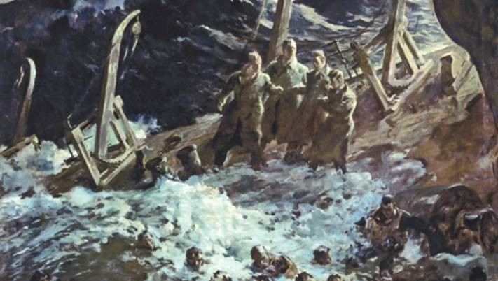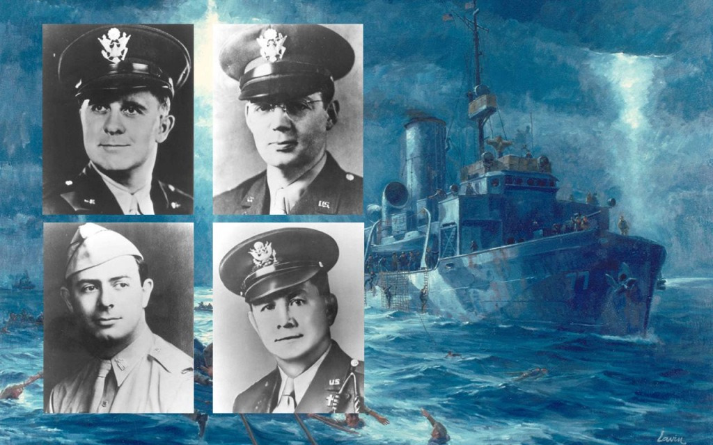 74 évvel ezelőtt egy náci tengeralattjáró süllyesztette el a Dorchester nevű amerikai katonai teherhajót az Atlanti-óceánon. 672 utas veszett oda; a túlélők utolsó képe a süllyedő hajóról, hogy a négy lelkipásztor: egy katolikus pap, egy rabbi és két protestáns lelkész egymásba kapaszkodva imádkozik.