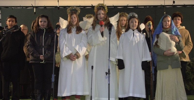 A negyedik gyertyagyújtási ünnepségen a móri Szent Erzsébet Általános Iskola diákjai modern feldolgozású karácsonyi énekeket adtak elő, de nem maradt el a hagyományos betlehemes játék sem.