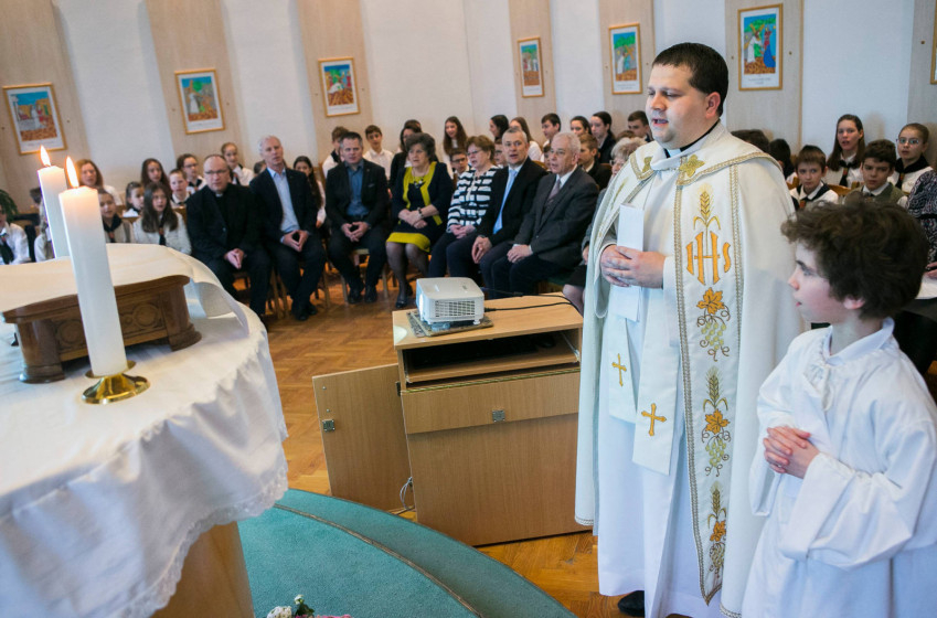 A szertartáson, amelyet Tóth Tibor iskolalelkész celebrált, jelen volt Kerpits Miklós az Esztergom-Budapesti Katolikus Iskolák Főhatóságának (EKIF) elnöke, Fekete Szabolcs kanonok, kerületi esperes, EKIF iskolalelkész, Salacz László országgyűlési képviselő, Engert Jakabné kecskeméti alpolgármester és Lévai Jánosné tanácsnok, a helyi önkormányzat egyházügyi bizottságának vezetője is.