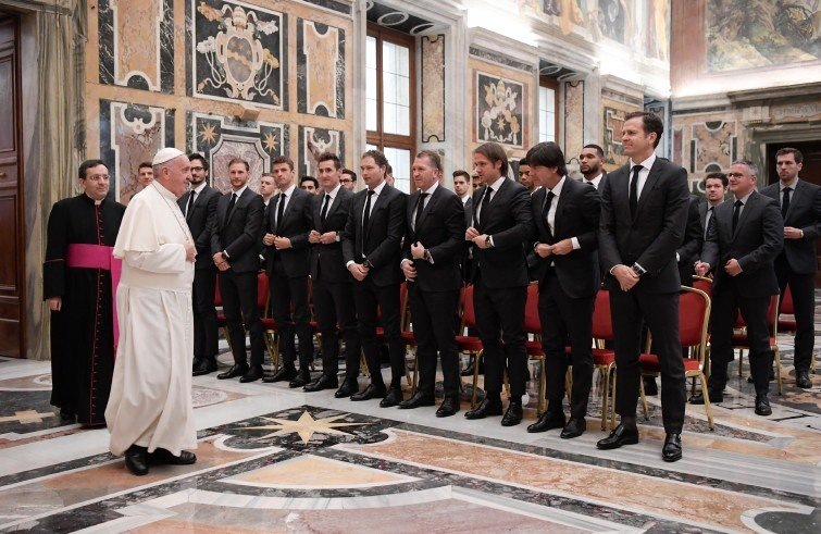 A Szentatya a csapatjáték fontosságáról beszélt a labdarúgóknak. Hangsúlyozta, a versenysportban nem elegendő a fegyelem és a személyes áldozat, hanem a másik tiszteletére és a csapatszellemre is szükség van. Az így elért siker ráébreszti a sportolókat felelősségükre a futballpályán kívül is, többek között a fiatalok iránt, akik példaképüknek tekintik őket.