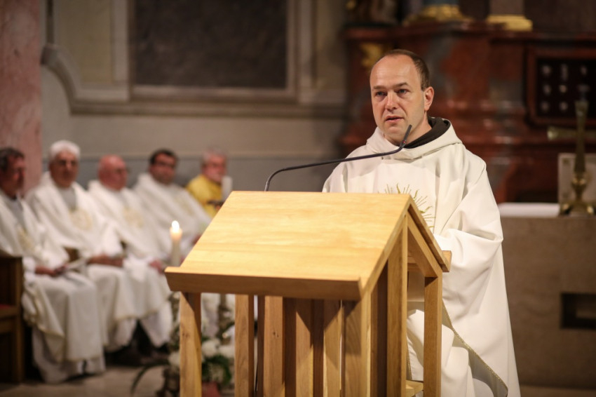 Szentbeszédében kiemelte: Isten szeretetét nem lehet bedeszkázni. Ahogy XVI. Benedek mondta, amikor az ember becsapja Isten előtt az ajtót, Ő kinyitja az ablakot. Isten kezdeményez, s mi szüntelen felfelé, Hozzá vágyunk, amikor értelmünkkel az igazat, akaratunkkal a jót, esztétikai érzékünkkel a szépet keressük. Ilyen az ember.