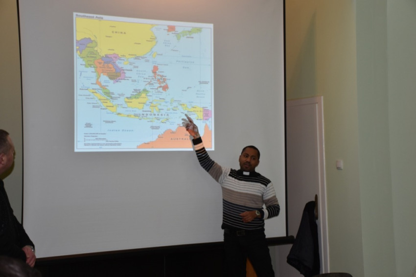 Elias atya bemutatta Indonéziát, beszélt a nemzeti, vallási és nyelvi különbségek ellenére is békésen együtt élő és egységre törekvő emberekről, rövid betekintést nyújtott az indonézek mindennapi életébe. Magyar nyelvű előadását Masa Tamás atya tolmácsolta szerb nyelvre.