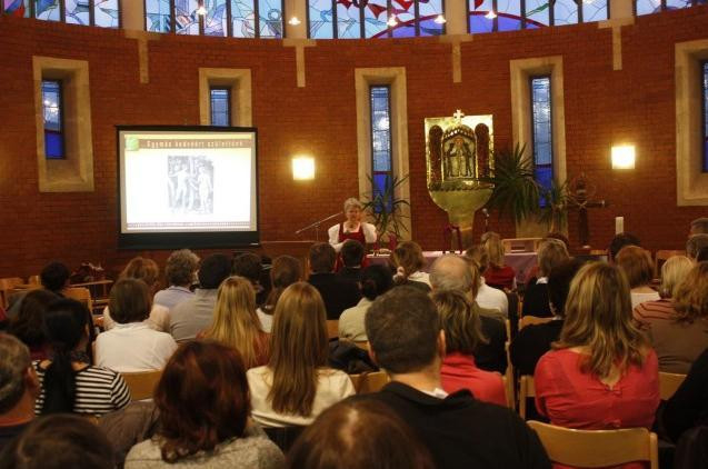 Kiss Zoltán igazgató rövid bevezetője után az előadó többek között a következő témákat fejtette ki: „Férfinak és nőnek teremtette...”; „Egy nyelvet beszélünk? Különbözőségek és hasonlóságok”; „A nemi identitás kialakításának nevelői feladatai”.