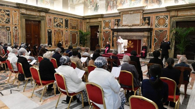 A Notre Dame Női Kanonok- és Tanítórend káptalanjához intézett beszéde végén Ferenc pápa a világjárvány okozta válság kapcsán azt kérte a nővérektől, hogy kerüljenek közelebb az elszigetelten, szomorúan és elcsüggedten élő emberekhez, majd a Miasszonyunk oltalmába ajánlotta őket.