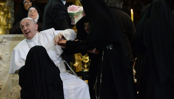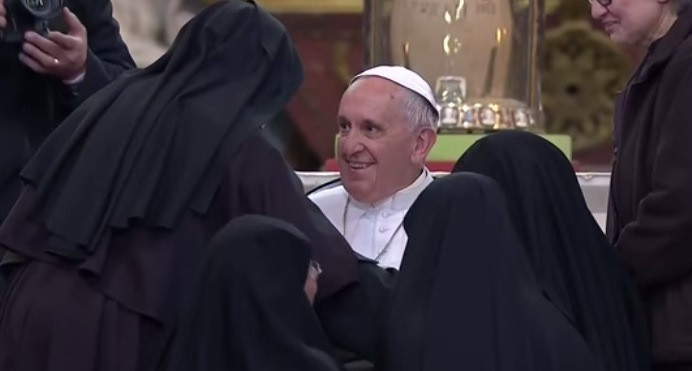 Mihelyt Crescenzio Sepe nápolyi bíboros-érsek közölte Ferenc pápával, hogy beleegyezett a nővérek kérésébe, az apácák azon nyomban körbevették a Szentatyát, és átvették az események irányítását, túláradó örömükben még a protokollról is megfeledkeztek.