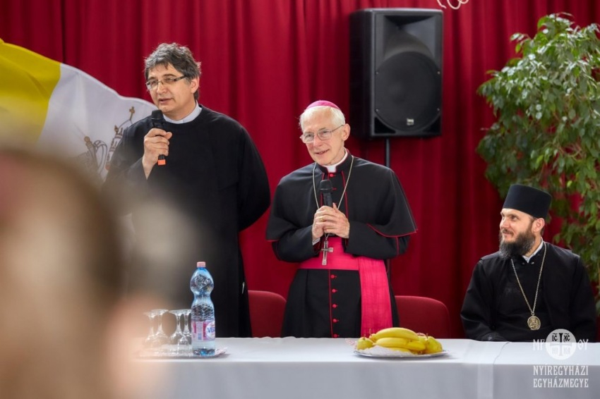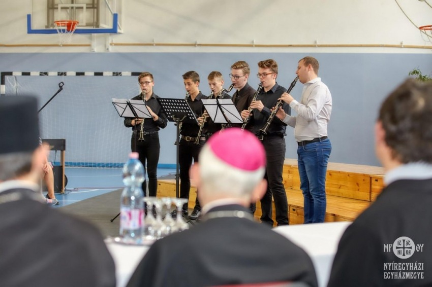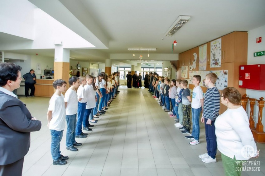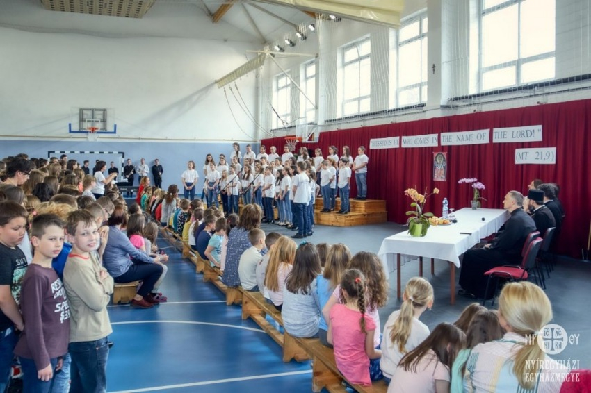 A püspöki székhelyen működő intézmények közül elsőként a nyíregyházi Szent Miklós Görögkatolikus Óvoda, Általános Iskola és Gimnáziumban fogadták, és a tanulók angol nyelven, valamint zenés műsorral köszöntötték a szentszéki nagykövetet, aki a diákok énekét és zenéjét hallva azt tudatosította a jelenlévőkben, hogy az Isten ilyen szépségeken keresztül is érkezhet hozzánk.
