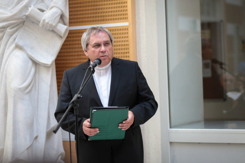 Várnai Jakab rektor üdvözlőbeszédében arra az időszakra emlékezett vissza, amikor a szerzetesi főiskola ötlete először felmerült. „Milyen nagyszerű, hogy Isten a maga teremtő képességéből ad az embernek. Mindazt, amit az ember létrehoz, nem tudjuk megmagyarázni csupán e világi szempontok szerint. Lukács atyára tekintve láthatjuk, milyen sokféle módon tud lehetőséghez juttatni valakit, teret adni arra, hogy alkosson” – méltatta a piarista szerzetest az intézmény rektora.