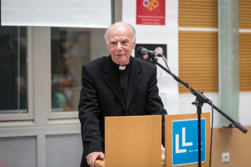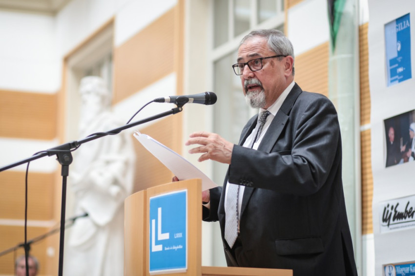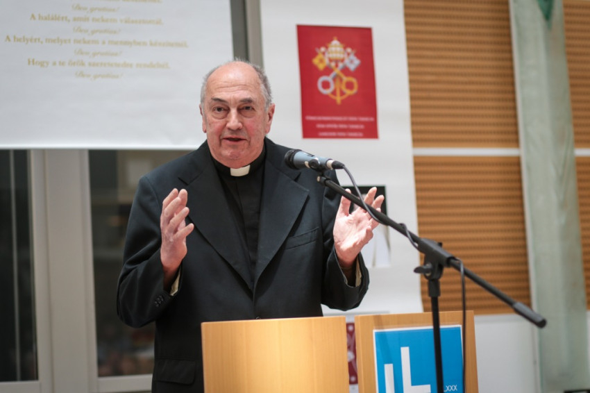 „Meg szeretném köszönni Lukács Lászlónak azt, amit értünk, a közért tett” – kezdte ünnepi beszédét Várszegi Asztrik pannonhalmi főapát, majd hozzátette: „Nagyon nehéz valakinek az életútját összefoglalni. Isten a szívet úgy rejtette el bennünk, hogy azt rajta kívül senki ne láthassa.” A főapát három pontban foglalta össze azokat a mozzanatokat, melyeket személyesen Lukács Lászlónak köszönhet. „Ne akarj tanító lenni, inkább tanulj azoktól, akik maguk is tanulnak” – idézett egy sivatagi atyát Várszegi Asztrik, majd hozzátette: „Kedves Tanár úr! Méltán hívnak téged így, mert valóban az vagy.” A másik, amit meg kell jegyezni, hogy Lukács László „finom intellektusával, széles körű tájékozottságával” mindig időszerű tudott lenni. Ezek mellett azokat a bevezető írásokat emelte ki Várszegi Asztrik, melyek a Vigilia első oldalán jelentek meg hónapról hónapra. Ezek az egyoldalas, „szemnyitogató, tanulságos” szövegek minden olvasó számára eligazítást nyújtanak. „Lukács László piarista atya embersége, hite, tettrekészsége, iskolai tevékenysége, lelkigyakorlatai, lelkivezetése, írásai nélkül szegényebb lenne hazai katolikus egyházunk” – zárta köszöntőjét Várszegi Asztrik főapát.