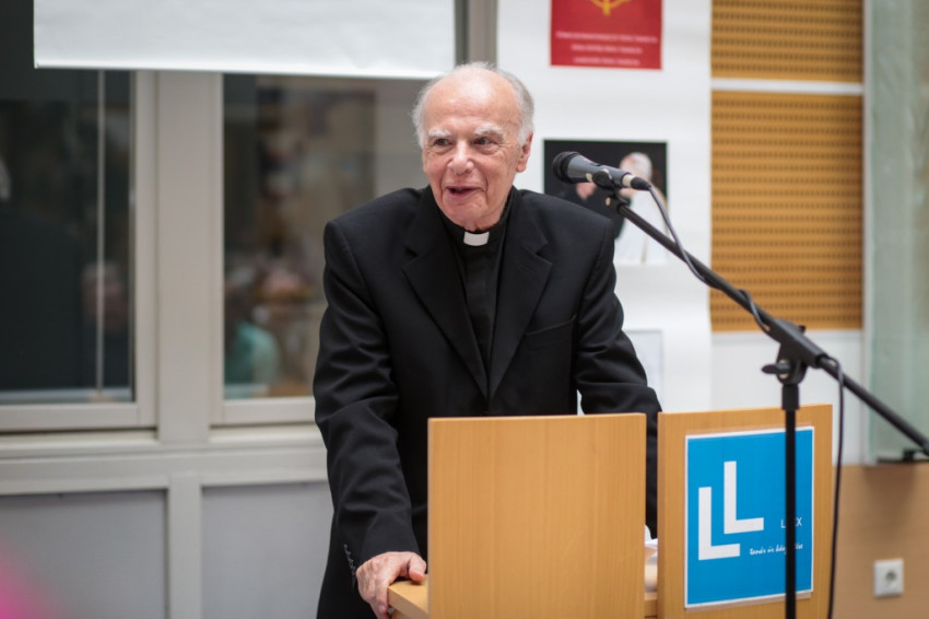 A rendtársak közül Ruppert József SchP köszöntötte az ünnepeltet. Lukács László két évtizedig működött Kecskeméten, egy olyan időszakban, amikor a politikai hatalom mindent megtett azért, hogy megnehezítse az egyházi iskolák működését. „Lukács Lászlónak egy nehéz, de hősies korban kellett megállnia a helyét” – emlékeztetett rendtársa.