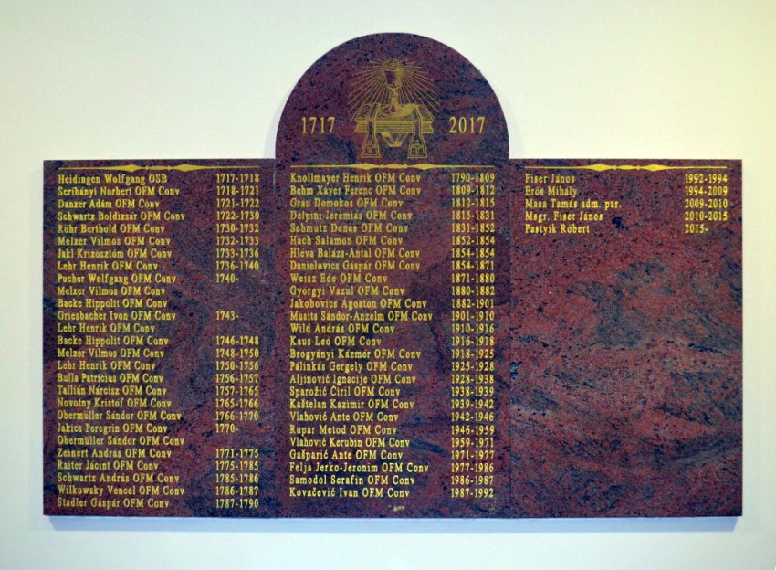 Az egyházi méltóságok és a hívek végül átvonultak a templom előcsarnokába, ahol leleplezték és megáldották az emléktáblát, amelyen Pancsova lelkipásztorainak nevei olvashatók, 1717-től napjainkig.