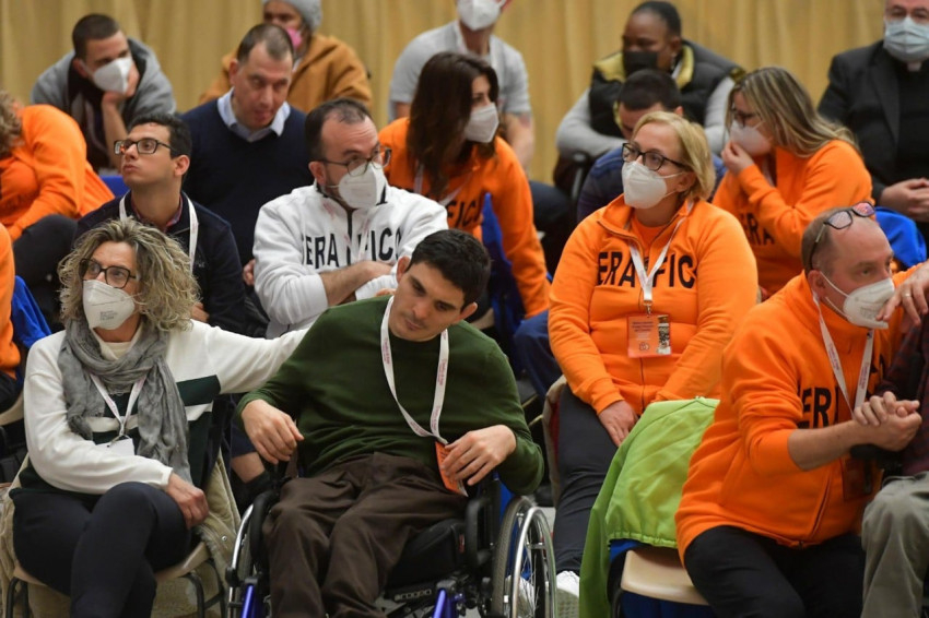 A velük való törődés nem egyirányú; valódi csere valósul meg benne, ahogy a szeretet evangéliumában az irgalmas szamaritánus példázata tanítja. Ez az alapelv mindenkire vonatkozik, mint a lelkiismeretünk szava, mely egyúttal érezteti az összetartozásunkat. Ezt tudatosításani kell és ki kell terjeszteni, főként a javak elosztásában – hangsúlyozta a pápa. Együttérzéssel szólt az ilyen szolgálatot végző intézmények nehézségeiről, melyek néha a túlélésért küzdenek. Minthogy nem lehet mindent a közintézményektől várni, sokak szolidaritására van szükség, mert nem lehet hagyni, hogy a családok egyedül küzdjenek meg ilyen problémákkal. Sok szülő új családot talál gyermekének a szeráfi intézményben – állapította meg örömmel Ferenc pápa, jelezve, hogy többen is jelen vannak közülük.