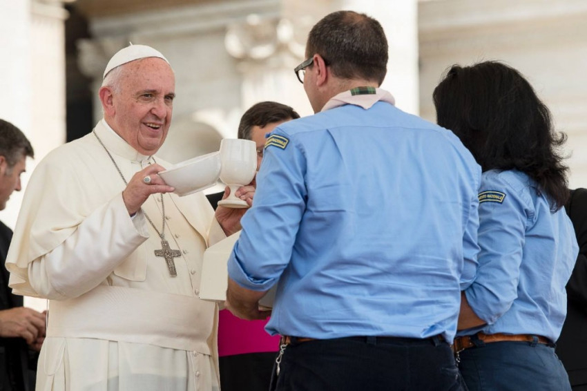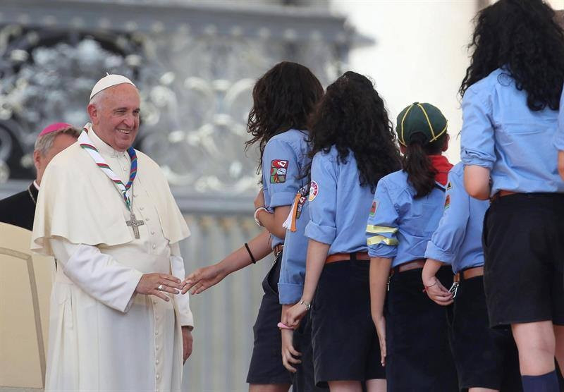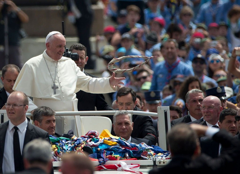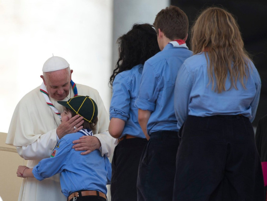Köszönöm, hogy ilyen nagy számban eljöttetek Olaszország minden részéből, hogy ilyen ünnepi hangulatot keltsetek a Szent Péter téren. Köszöntöm a férfi és női cserkészelnököt, a cserkészekkel megbízott egyházi asszisztenst, a farkaskölyköket és a katicákat (fiú és lány kiscserkészek – A szerk.), a cserkészvezetőket, a vándorokat és a kószákat, a csapatok parancsnokait és a cserkészpapokat. Ne dicsekedjetek ezzel, de mondok nektek valamit: az egyház értékes része vagytok Olaszországban. Talán a legkisebbek nem értik még jól, de a nagyobbak, remélem, igen! Részletesebben: fontos a ti hozzájárulásotok, amellyel a családokat segítitek a kisgyermekek, a gyermekek és a fiatalok nevelésében. A szülők rátok bízzák őket, mert meggyőződtek a cserkészmódszer jóságáról és bölcsességéről, amely a nagy emberi értékeken, a természettel való kapcsolaton, a vallásosságon és az Istenbe vetett hiten alapul; egy olyan módszer, mely felelősségteljes szabadságra nevel. A családok bizalma hitelt érdemlő, amint az egyházé is: kívánom, hogy érezzétek magatokat mindig a nagy keresztény közösség részének.