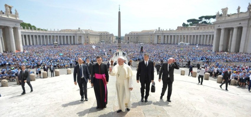 Olaszország szinte minden részéről érkeztek gyalogosan, kerékpárral vagy busszal cserkészek az Olasz Katolikus Cserkészvezetők és Cserkészek Szövetségének (AGESCI – Associazione Guide e Scouts Cattolici Italiani) szervezésében a Szent Péter térre.