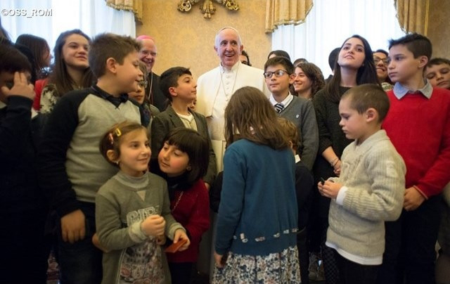 Ferenc pápa mosolyogva, derűsen beszélgetett a gyerekekkel, akik különleges helyet foglalnak el szívében. Utalva a Katolikus Akció képzési programjának mottójára: „Úton Feléd”, a pápa megállapította: „Valóban mindannyian az Úr felé tartunk – de sokan nem gondolnak erre! Mit is jelent az, hogy úton vagyunk az Úrhoz? Azt jelenti, hogy a jó útját járjuk, és nem a rosszét. Hogy a megbocsátás útját választjuk a bosszú útja helyett; a béke útját, és nem a háborúét; a szolidaritás útját, nem pedig az önzését.” Ezzel kapcsolatban a Szentatya megdicsérte a fiatalokat, amiért az agrigentói (Szicília – a szerk.) egyházmegyében egy projekttel segítik a migránsokat. Ferenc pápa így fogalmazott: „Az Úr áldja meg ennek a közösségnek a munkáját, akik példás módon fogadják be a nagy reményekkel, de épp oly sok sebbel és szükséggel érkező testvéreinket, akik békét és kenyeret keresnek.” A szerdai általános audiencián bemutattak a pápának egy öthónapos kisgyermeket, aki a Szicíliai-szorosban született egy csónakon. „Sok ilyen van, sok gyermeknek sikerül átjönnie, másoknak nem. Jó dolog, amit tesztek ezekért az emberekért, köszönet érte” – mondta a pápa az olasz fiataloknak.