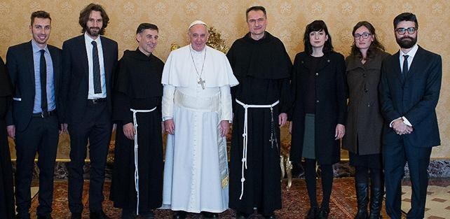 A találkozó közvetlen és szívélyes légkörben zajlott, jelen volt Mauro Gambetti atya, az assisi kolostor kusztosa, valamint Enzo Fortunato atya, a ferences folyóirat főszerkesztője, illetve az újság szerkesztői. A pápa mindenkit egyesével köszöntött, együtt imádkozott velük, majd jó munkát kívánt nekik, és imáikat kérte személyéért.