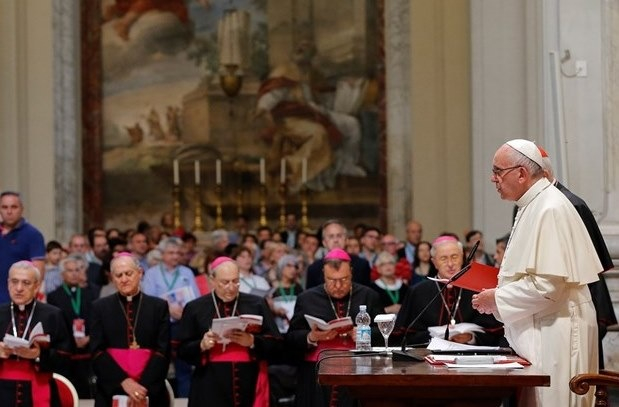 A Szentatya beszéde elején elmondta, nem apostoli buzdítását foglalja össze, hanem a családszinódus néhány kulcsfogalmát szeretné kifejteni, melyek segítik az Amoris laetitia lelkületének mélyebb megértését.