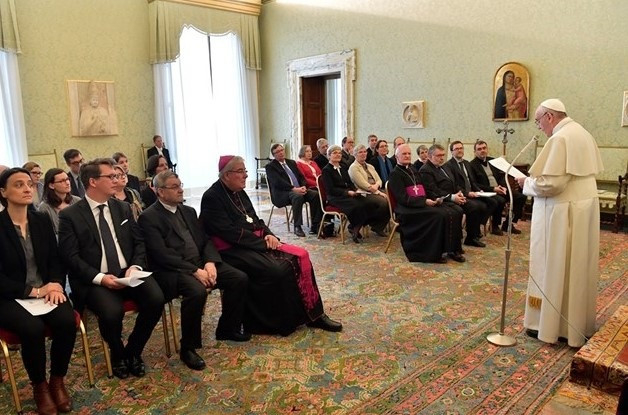 A „szolidaritás” kifejezés kissé elkopottá vált, és időnként rosszul értelmezik, de sokkal többet jelent, mint az alkalmankénti nagylelkűség tettei – folytatta a pápa. – Új mentalitást kell teremteni, amely a közösség fogalmában gondolkodik és „mindenki életét” helyezi előtérbe a javak kevesek általi felhalmozása helyett. A Katolikus Küldöttség az Együttműködésért szervezet éppen ebben az összefüggésben végzi tevékenységét. Valódi partnerséget teremtett meg az egyházakkal és az országok helyi képviselőivel, amelynek keretében az önkéntesek együttműködnek a polgári hatóságokkal és minden jóakaratú emberrel. Ez hozzájárul a hiteles ökológiai megtéréshez, amely felismeri minden ember méltóságát, értékét, kreativitását és képességét a közjó keresésére és előmozdítására. Ferenc pápa végül arra ösztönözte a Katolikus Küldöttség az Együttműködésért francia szervezet képviselőit, hogy egy olyan Egyház szolgálatában álljanak, amely mindenkinek lehetővé teszi, hogy felismerje Isten meglepő közelségét, és amely elkötelezi magát mindenki java és közös otthonunk védelme érdekében.