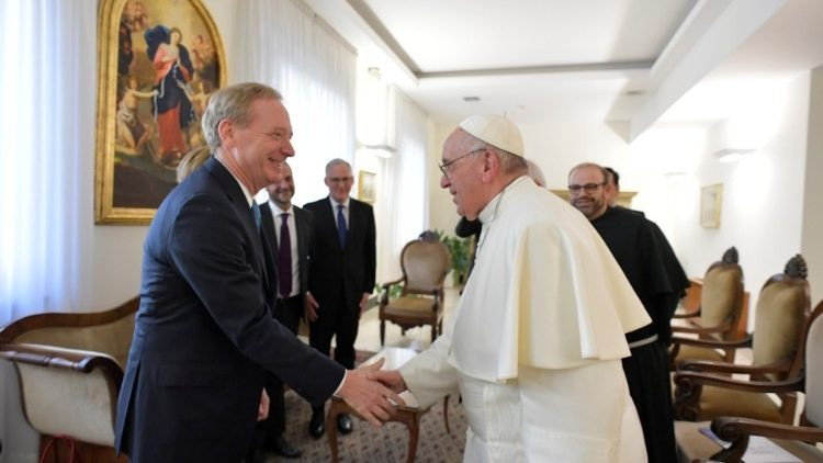 A szerda délután megtartott találkozón a közjó szolgálatában működő mesterséges intelligenciáról volt szó, továbbá olyan tevékenységekről, amelyek célja, hogy csökkentsék a digitális megosztottságot, a „digitális szakadékot”, amely továbbra is világszinten jellemző. Brad Smith, a Microsoft elnöke és Vincenzo Paglia érsek arról tájékoztatták a Szentatyát, hogy a Microsoft vállalat és a Pápai Életvédő Akadémia nemzetközi díjat hoz létre a mesterséges intelligencia etikus használatának elismerésére.