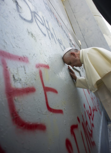 A palesztin elnöki palotából a Jászol-térre menet Ferenc pápa leszállt a nyitott dzsipről és odament a Betlehemet és Izraelt elválasztó falhoz. Megállt előtte és néhány perces imába mélyedt, majd a falhoz támasztotta a homlokát.