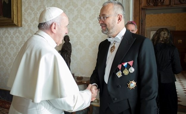 Délelőtt az új horvát szentszéki nagykövet, Neven Pelicarić adta át megbízólevelét a pápának. Az ötvenéves diplomata 1992-ben szerzett jogi diplomát Zágrábban, majd New Yorkban nemzetközi jogból és diplomáciából végzett mesterkurzust. A horvát külügyminisztériumban dolgozott, illetve 2009–2013 között Spanyolországban képviselte hazáját nagykövetként. 2013-tól miniszterelnöki diplomáciai tanácsadó volt. Anyanyelvén kívül angolul, olaszul, spanyolul, németül és franciául beszél.