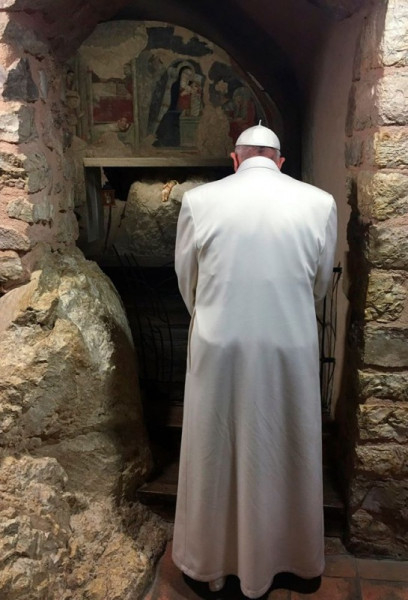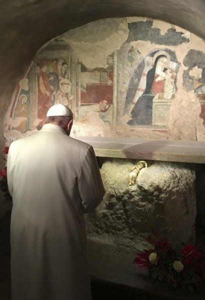 A Szentatya váratlan útjának célja az volt, hogy megtekintse a helyet, ahol Szent Ferenc először állított betlehemet, megalapítva ezzel az azóta is élő hagyományt. A Szentatya megtekintette a grecciói ferences kegyhelyen a betlehemi jászlat és imádkozott a betlehemi kápolnában.
