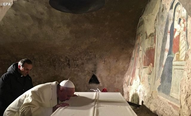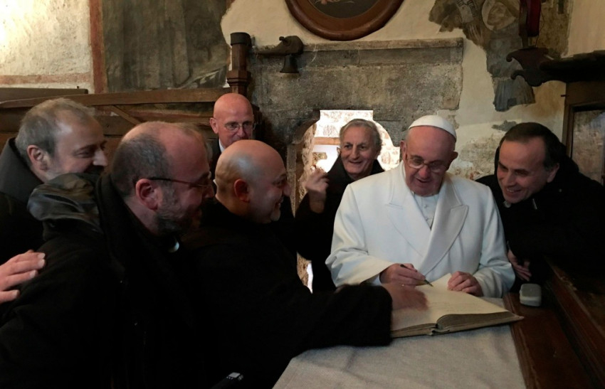 Ferenc pápa a greccói ferences betlehem vendégkönyvében ezt az üzenetet hagyta: