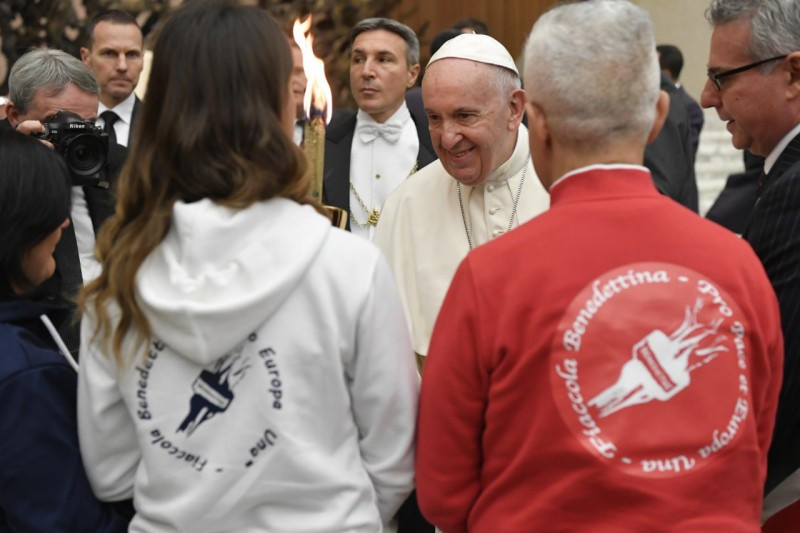 Szent Benedek üzenete 1500 év távlatából sem vesztett semmit frissességéből. Arra szólít, hogy az igazságosság, a béke és az egység alapján építsük a földrész erkölcsi rendjét. Ezek az európai alapértékek, melyeket a kontinens védőszentjének személyéhez kötődő Norcia, Subiaco és Cassino városok „Pro Pace et Europa Una” (magyarul: A békéért és az egy Európáért) elnevezésű zarándokfáklyája képvisel. Mindez azon a sajtótájékoztatón hangzott el, amelyet az Európai Parlament római székhelyén tartottak február 14-én. Az eseményen bemutatták a 2020-as olaszországi bencés ünnepségek tervezett programját.