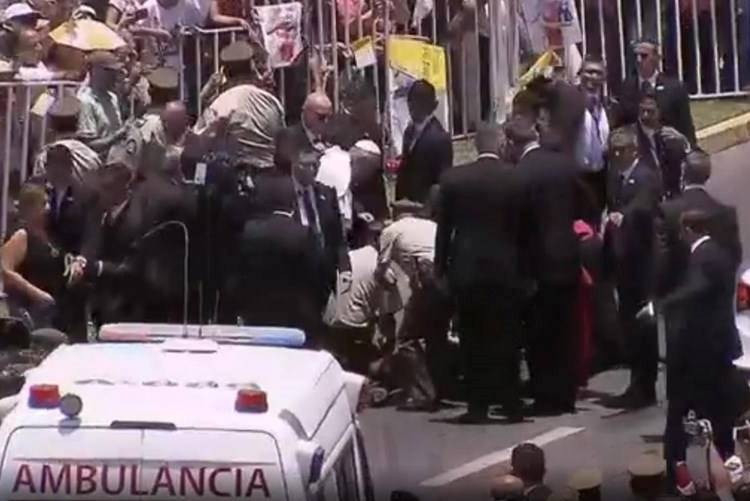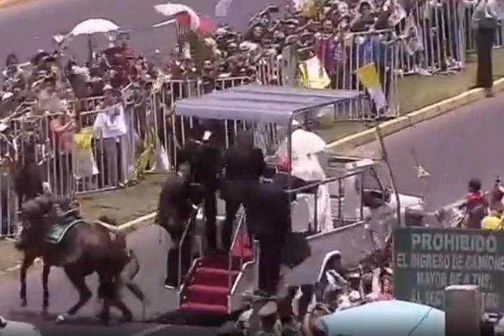 Minden pár pillanat alatt történt. A pápamobil elhaladásakor az állat, amelyet két csendőr tartott a kantárral, felemelkedett, hogy kiszabaduljon, és a fiatal csendőrnő, aki a nyeregben ült, olyan szerencsétlenül zuhant, hogy a pápamobilra is ráesett. Ferenc pápa rögtön reagált, megkérte a sofőrt, hogy álljon meg, és visszasietett gyalog, hogy az aszfalton fekvő nő mellett legyen, miközben megkezdték az ellátását.
